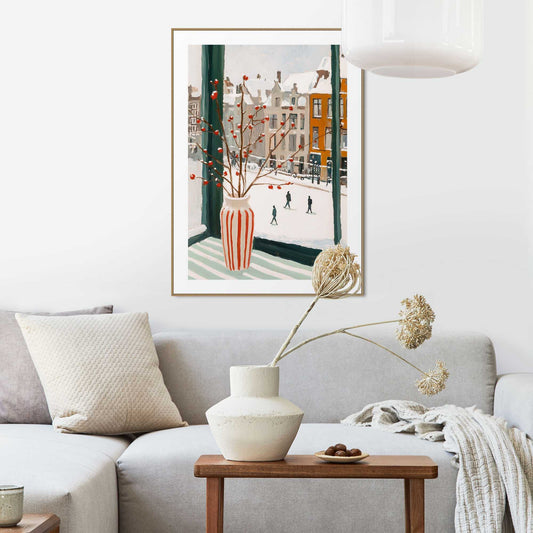 Framed Poster Winter Window Vase 70x50