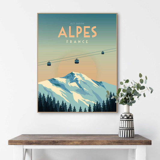 Framed Poster Alpes Ski 70x50