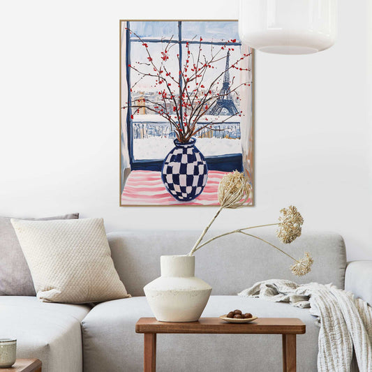 Framed Poster Winter Vase Blue Checkers 70x50