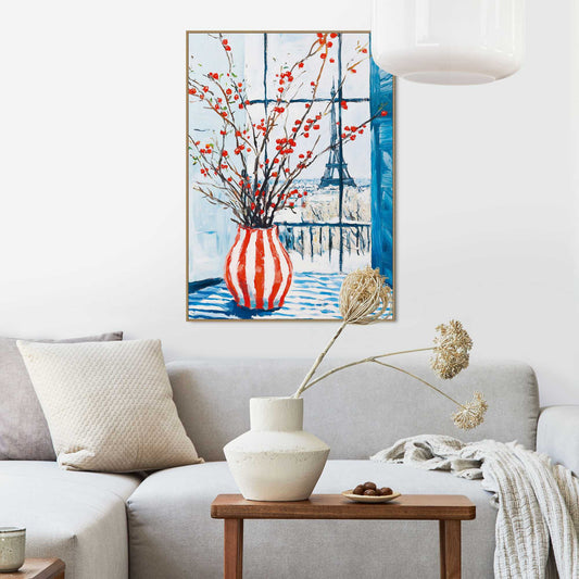 Framed Poster Winter Vase Red Stripes 70x50