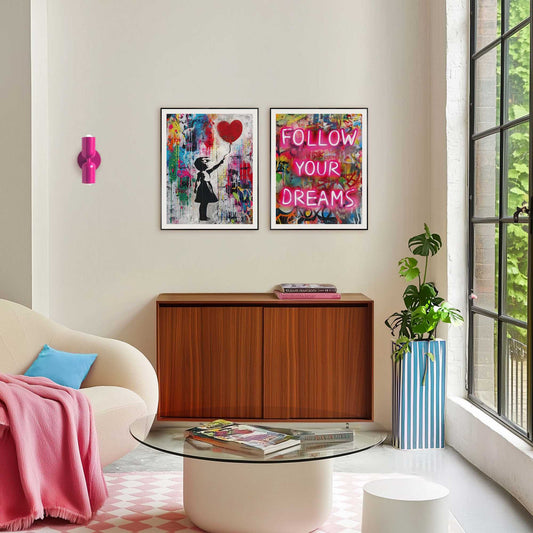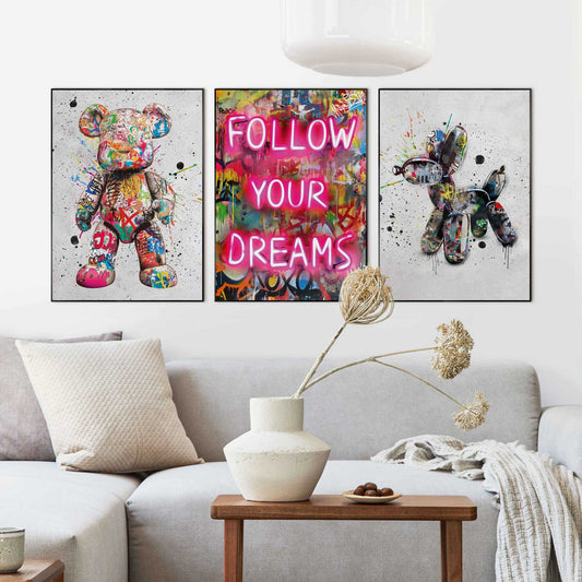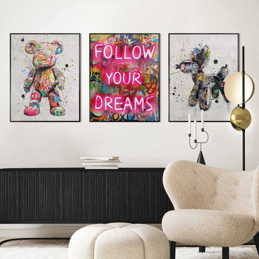 Framed Poster Graffiti Set - Follow your dreams 70x50