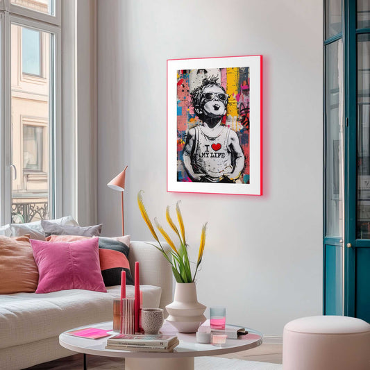 Framed Poster Little Rebel - colourful in Neon 70x50