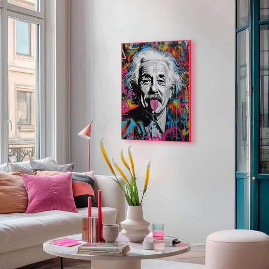 Framed Poster Einstein Tongue in Neon 70x50