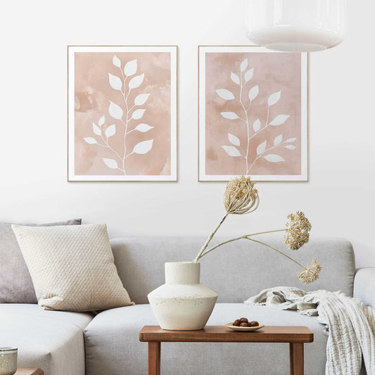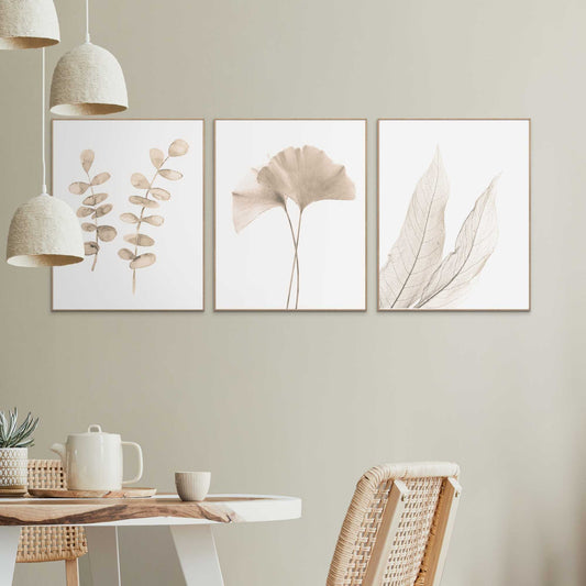 Framed Poster Beige Leafs Set 40x50