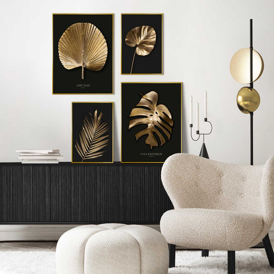 Framed in Gold Golden Leafs on Black 40x30