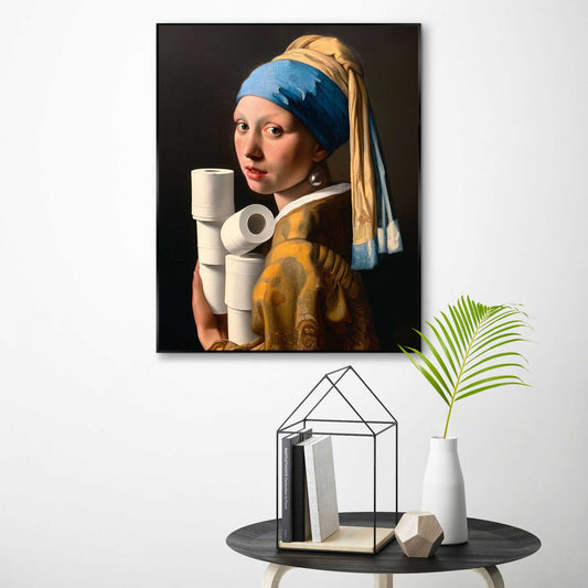 Framed in Black Toilet Pearl Girl 50x40