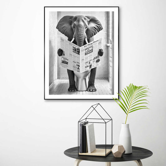 Framed in Black Elephant Toilet 70x50