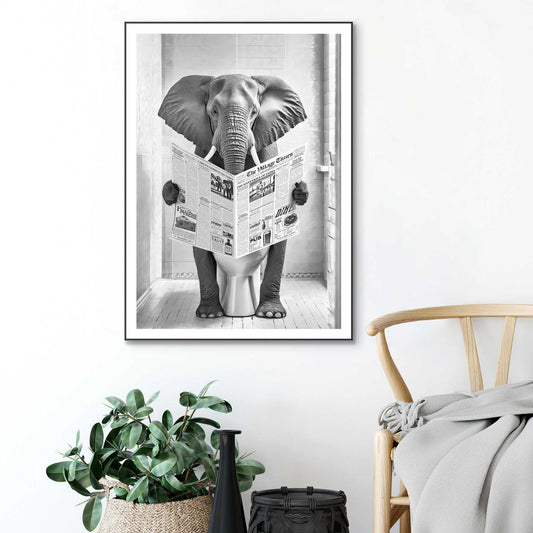 Framed in Black Elephant Toilet 70x50