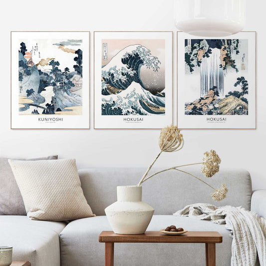 Framed in Wood Hokusai Triptych 50x40