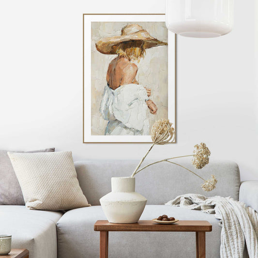 Framed in Wood Woman with straw hat 70x50