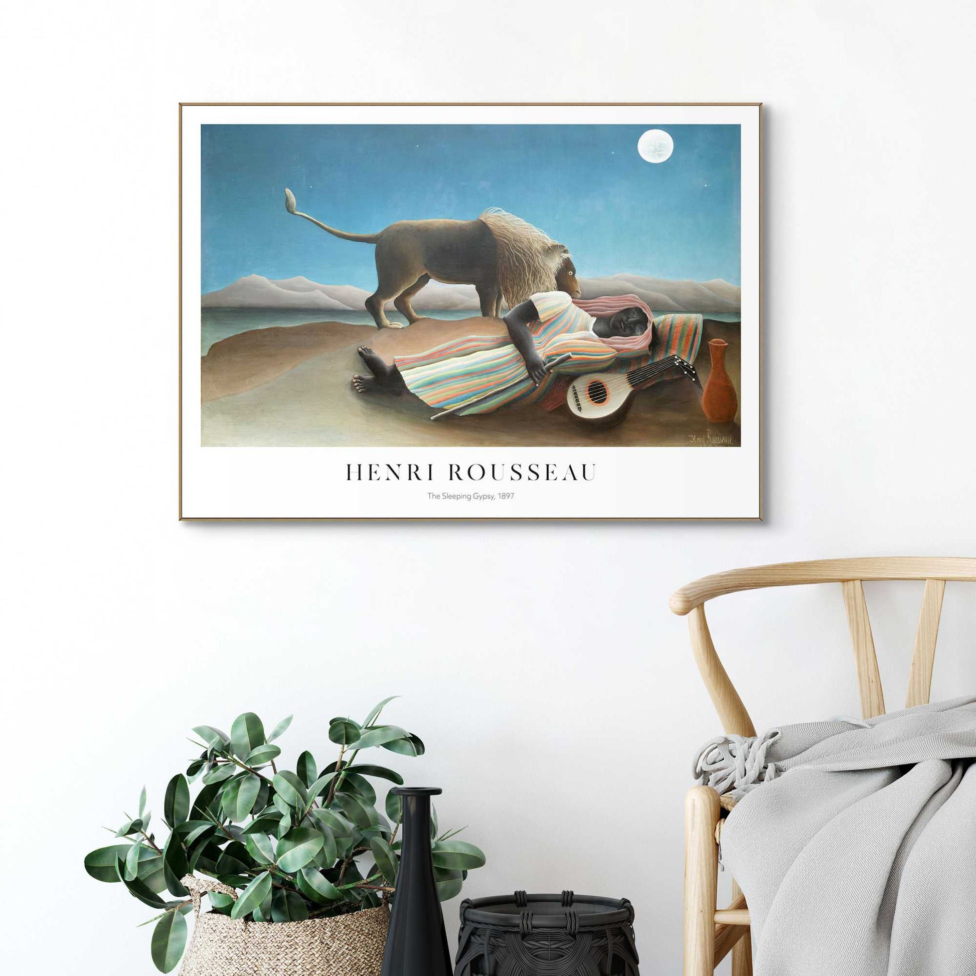 Framed in Wood Henri Rousseau - the sleeping gypsy 50x70