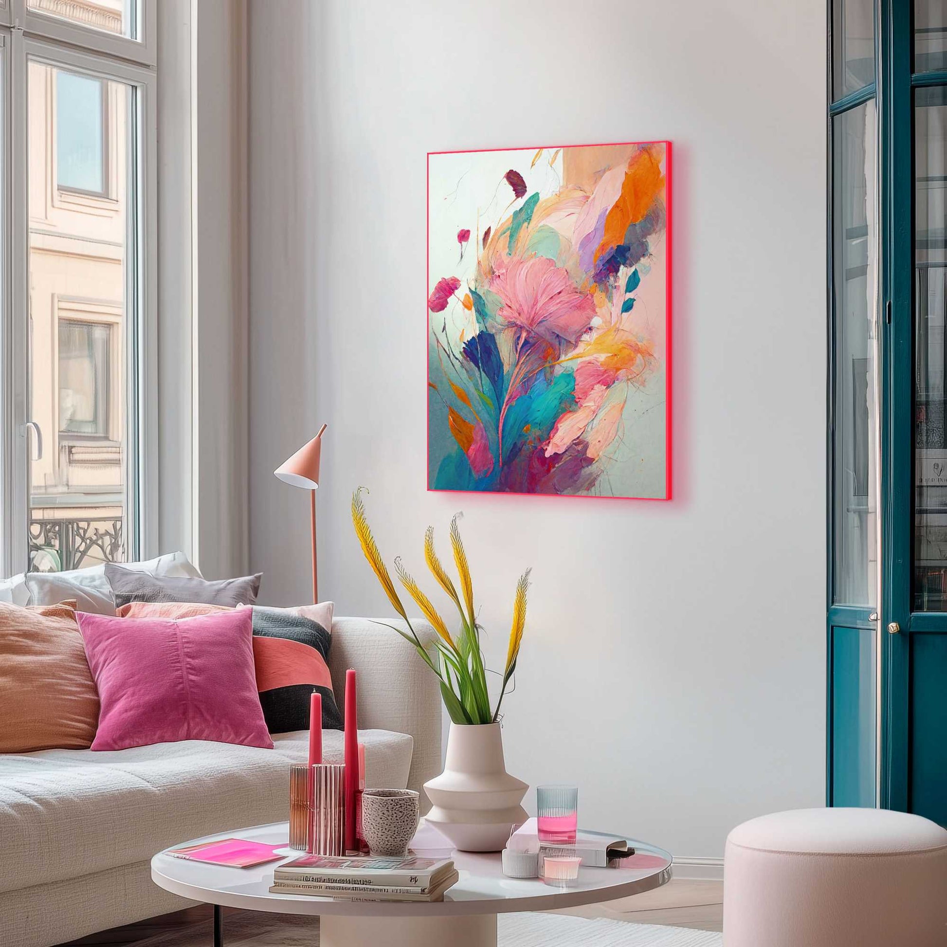 Framed Poster Colourful Painted Flowers I in Neon 70x50